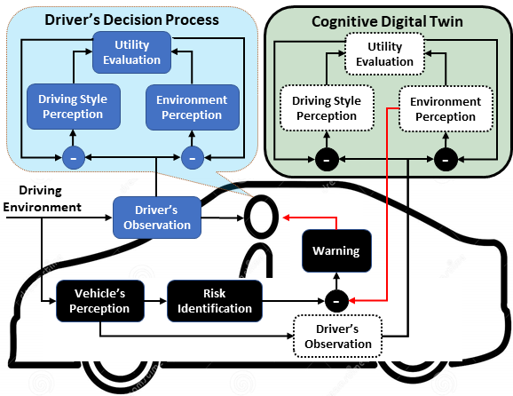 A Cognitive-digital-twin-based Driving Assistance System (CDAS) that issues warnings tailored to the driver’s perception of the driving environment and driving style.