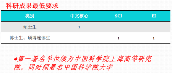 博士生在申请学位前,必须以第一作者或第二作者(导师为第一作者)、我所为第一署名单位在所学位委员会认定的核心期刊上发表(或被接收发表)二篇以上(含二篇)与学位论文相关的学术论文。其中至少应有一篇发表在国际检索SCI刊物收录的期刊上,另一篇发表在国际检索EI刊物收录的期刊上。取得一项有授权号并为第一发明人或第二发明人(导师为第一发明人)的发明专利,或取得省部级二等奖以上并排名为前五名的科研成果奖励可以相当于在国际检索(SCI或EI)刊物收录的期刊发表学术论文一篇。科研成果署名加上中国科学院大学(排名最后即可)